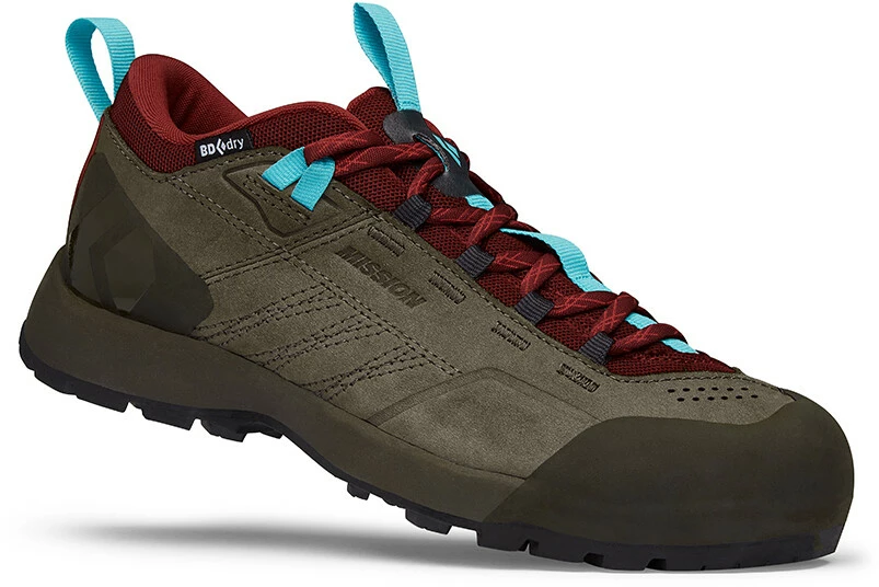 De Mission Leather Low WP is een duurzame, waterdichte approach schoen die steun en bescherming biedt bij elke stap en geschikt is voor alle seizoenen en terreinen. Dankzij het hoogwaardige nubuckleren bovenwerk en de waterdichte en ademende BD.dry-voering houdt deze schoen je voeten droog op natte paden en sneeuwvelden. De klimspecifieke voorvoet- en teenconstructie met BlackLabel bergrubber heeft een goede grip en zorgt voor precisie wanneer het parcours uitmondt in een klimpassage. Het diepe profiel zorgt voor een goede grip, zelfs op modderige oppervlakken, terwijl de tractie over de hele lengte met padding voor extra comfort beschermt tegen het binnendringen van vuil. De perfect afgestemde EVA-middenzool biedt voldoende stijfheid en precisie op steil terrein en via ferrata, en verschillende webbing-lussen bieden bevestigingsmogelijkheden wanneer de aanpak eindigt en het klimmen begint.