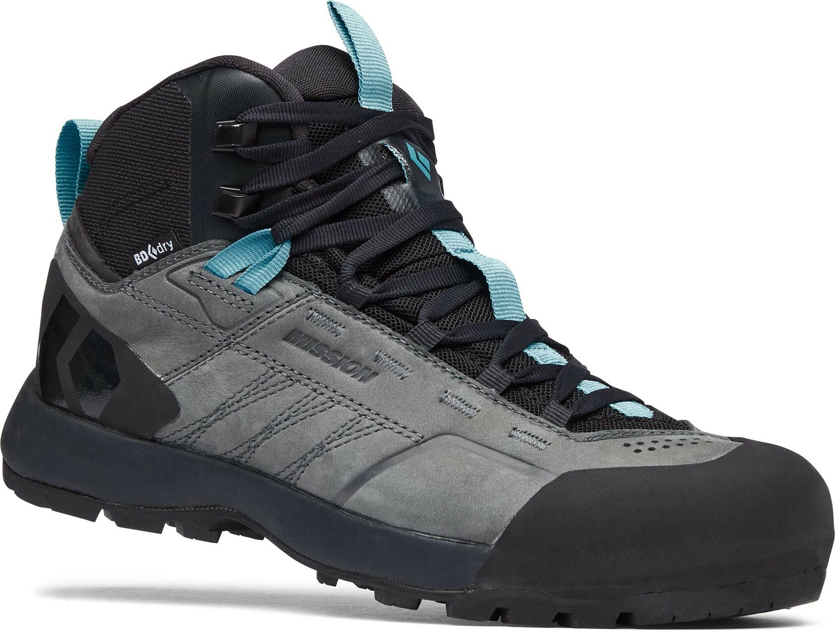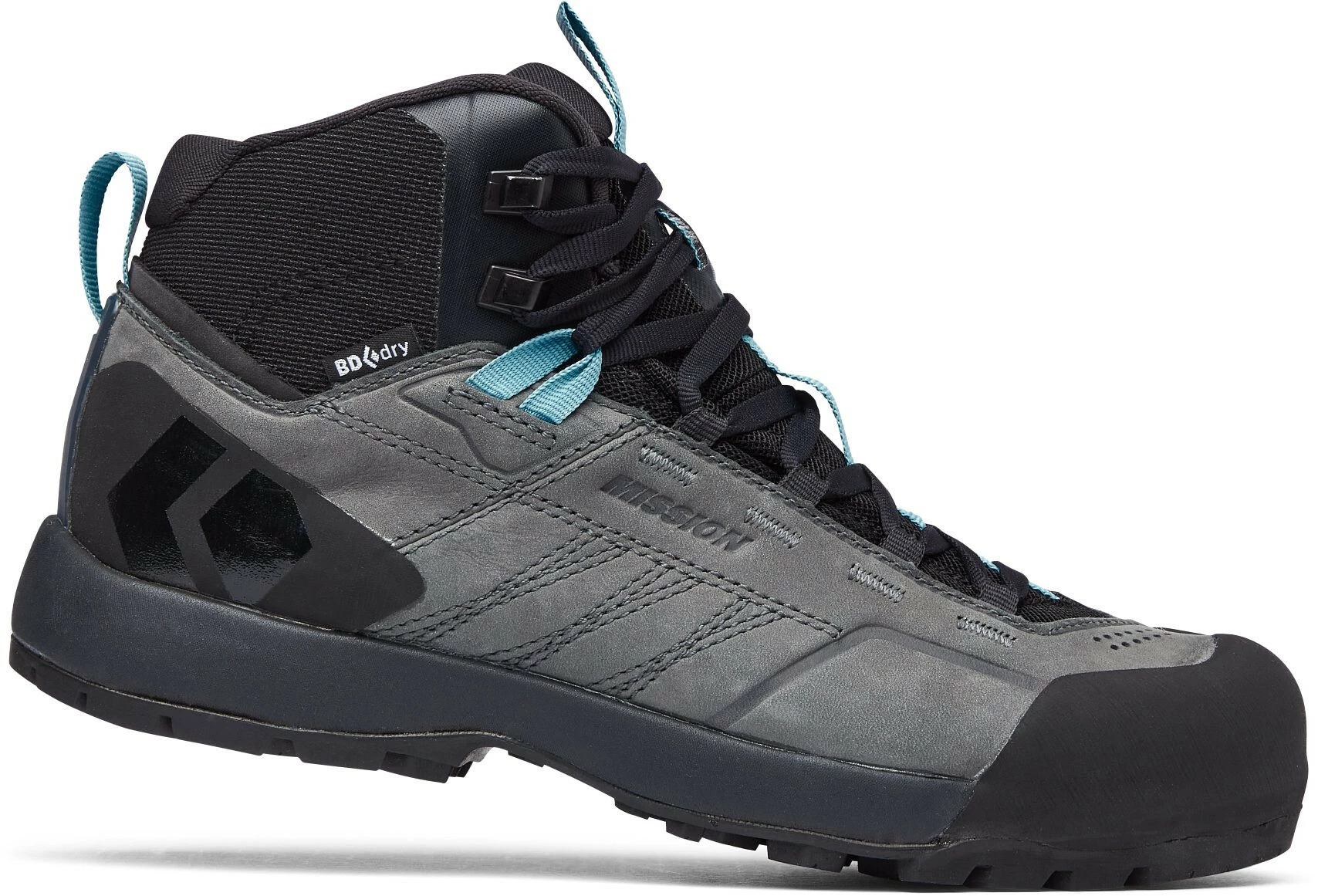 De Mission Leather Mid WP is een approach-schoen die enkelbescherming en ondersteuning biedt als je met een zware bepakking en grote doelen de bergen intrekt. De Mission Leather Mid WP is voorzien van een waterdichte, ademende BD.dry voering in combinatie met een bovenwerk van eersteklas nubuckleer, zodat je droog blijft tijdens kreekjes en sneeuwvelden. De gewatteerde enkel biedt bescherming in puinvelden en rotsachtig terrein, en de klimmende voorvoet en teenkapconstructie met kleverig BlackLabel bergrubber zorgt voor precisie als het pad overgaat in een klim. Diepe lamellen met hoge tractie zorgen voor grip in de modder, en de verstevigde tong met inzetstuk zorgt voor maximaal comfort en houdt vuil en puin buiten. Een afgestemde EVA-middenzool zorgt voor voldoende stijfheid en precisie bij het doorkruisen van verticaal terrein of via ferrata’s, en meerdere riemlussen geven je bevestigingsopties wanneer de benadering eindigt en het klimmen begint.