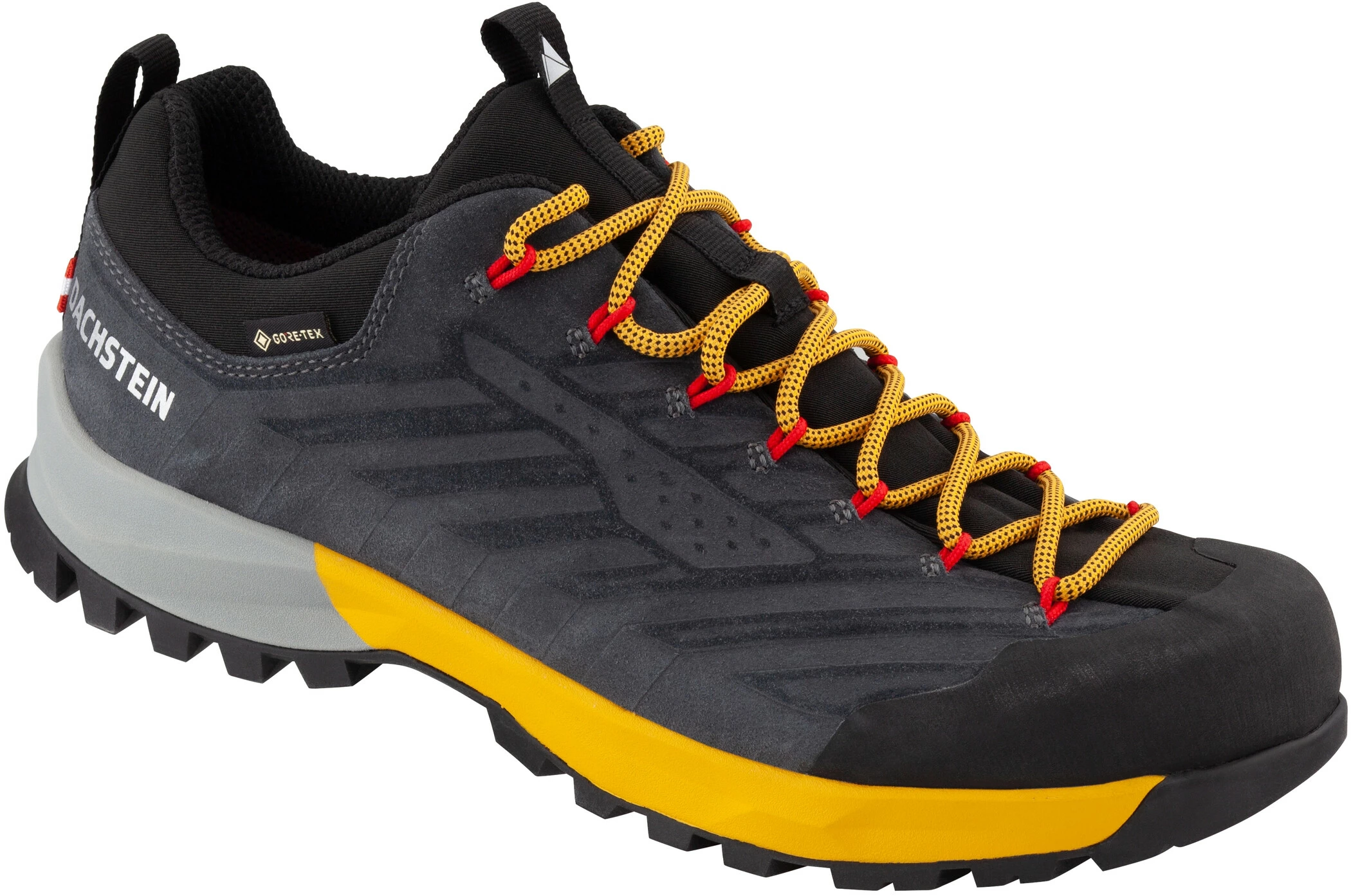 De SF21 GTX van DACHSTEIN is klaar voor elk avontuur. Van het hoogwaardige bovenmateriaal van suède en slijtvaste Cordura mesh tot de slimme vetersluiting en de zool, de schoenenexpert uit Oostenrijk presenteert een samenhangend en veelzijdig totaalpakket. Het middelpunt is de nieuwe zool, die DACHSTEIN samen met de zoolenspecialist SUPTRACTION uit Zwitserland heeft ontwikkeld: Het speciale rubbermengsel en het tot in het kleinste detail afgestemde profielontwerp geven de multifunctionele “Ascent”-zool een precieze grip op rotsachtig terrein tijdens de beklimming. Maar ook tijdens uitgebreide uitstapjes in de natuur zit de schoen lekker en is hij niet te stijf om urenlang de omgeving te verkennen. Een rubberen inzetstuk over de tenen beschermt tegen steenslag en schuren. De SF21GTX is bijzonder robuust en vormvast dankzij zijn geknepen ontwerp. Bovendien zorgt het geïntegreerde vetersysteem, dat over de schacht tot aan de zool loopt, voor een nog betere zijdelingse steun. Om ervoor te zorgen dat de multifunctionele schoen ook op elk weertype is voorbereid, is de SF21 GTX verkrijgbaar met het waterdichte en ademende GORE-TEX membraan. Lang leve de spontaniteit!