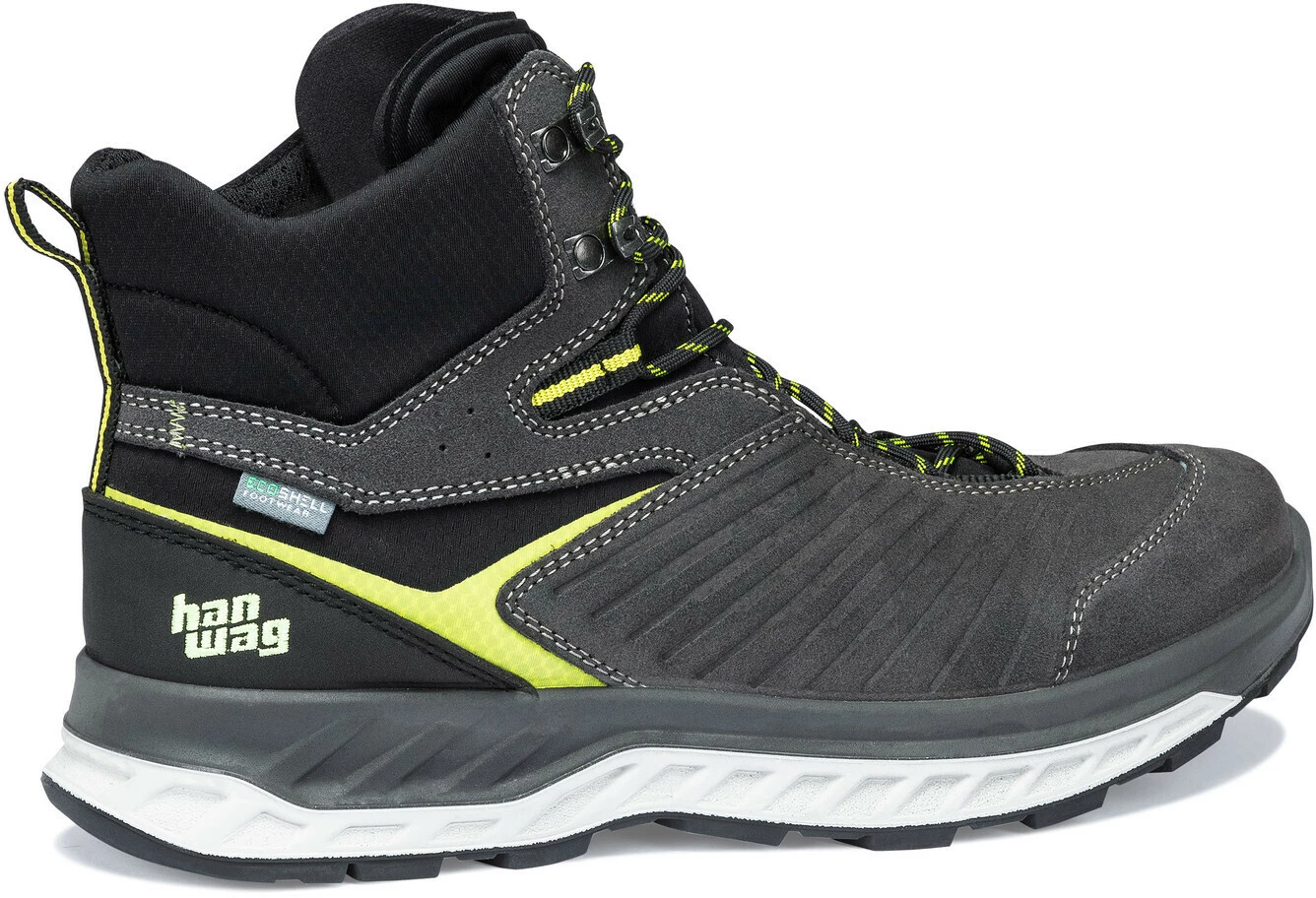 Modern, lichtgewicht en multifunctioneel – de Blueridge ES is een veelzijdige lichtgewicht wandelschoen uitgerust met tal van duurzame en innovatieve eigenschappen. Naast het duurzame Perwanger bovenleer en het 100% gerecyclede bovenmateriaal volgens de Global Recycling Standard’, omvat dit vooral ook het volledig PFC-vrije membraan. Waterdicht, ademend, duurzaam – dit door HANWAG ontwikkelde PU-membraan is gebaseerd op een complex, hydrofiel systeem dat waterdichtheid en ademend vermogen bereikt terwijl het gebruik van fluorkoolstoffen volledig wordt vermeden. Het geheel wordt gebruikt als een stabiel 3-laags laminaat. Het voor de Blueridge ES gebruikte materiaal is uitsluitend afkomstig van Europese leveranciers; de schoen wordt volledig in Europa vervaardigd. Een lange levensduur en duurzaamheid gaan echter niet ten koste van functie en comfort! De Blueridge ES bewijst dit met een perfecte pasvorm en een nieuw ontwikkelde tussenzool: Dit is een driedimensionale structuur van compact en geëxpandeerd polyurethaan die een soort schaal vormt waarin de voet comfortabel ligt. Een verhoogde zoolrand van stabiliserend PU biedt extra steun rond de voet en bij de hiel. Een thermovormbaar schuim in de HANWAG 3D-BreathFit tong compenseert de anatomische asymmetrie van de voet door asymmetrische polstering en past zich aan de individuele voetvorm aan. Dankzij de antislip Terragrip-buitenzool met een profieldiepte van 4 mm en grote noppen met een breed contactoppervlak rolt de voet niet alleen gemakkelijk en harmonieus, de modern vormgegeven Blueridge ES voelt zich ook comfortabel op de meest uiteenlopende ondergronden – van het natte middelgebergte in de herfst tot het mediterrane, zanderige kustwandelpad.