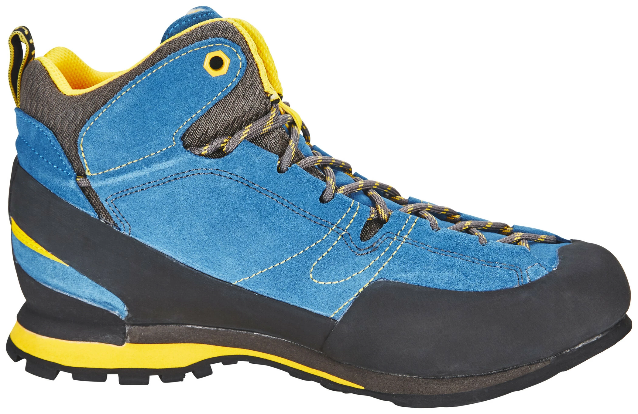 De as wordt beschermd door een rubberen rand en garandeert bescherming tegen ongewenste stoten. De Gore-Tex voering garandeert een optimaal klimaatcomfort, zelfs na vele uren. Het vetersysteem is gepatenteerd en komt uit het Mythos-project. De 2 mm plantair inzetstuk in EVA ondersteunt de demping bij een impact met de grond en draagt bij aan het algemene schoencomfort. De Vibram-zool met Impact Brake System is uitgerust met een klimzone om maximale grip bij het klimmen te garanderen.