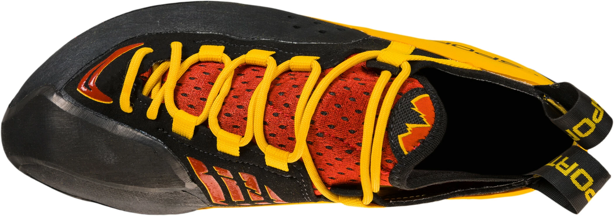 De Genius van La Sportiva is een prestatieschoen die zowel gevoelig als krachtig is. Dankzij de No-Edge technologie, die de afstand tussen voet en rots minimaliseert, wordt de gevoeligheid verhoogd bij kleine schoppen, terwijl de druk beter kan worden toegepast op de binnenwand van de schoen. Samen met de Vibram XS Grip² biedt deze schoen de beste grip op kleine leesten en extreme wrijvingsstappen. Het vetersluitingssysteem maakt het ook mogelijk om de schoen nauwkeurig aan de voet aan te passen. En het Permanent Power Platform System zorgt ervoor dat de schoen ook na lange periodes van slijtage en vele dagen klimmen zijn vorm niet verliest. Door het hoge comfort laat de Genius lange dagen op de rotsen toe, maar ook harde trainingssessies in de rotsenhal.