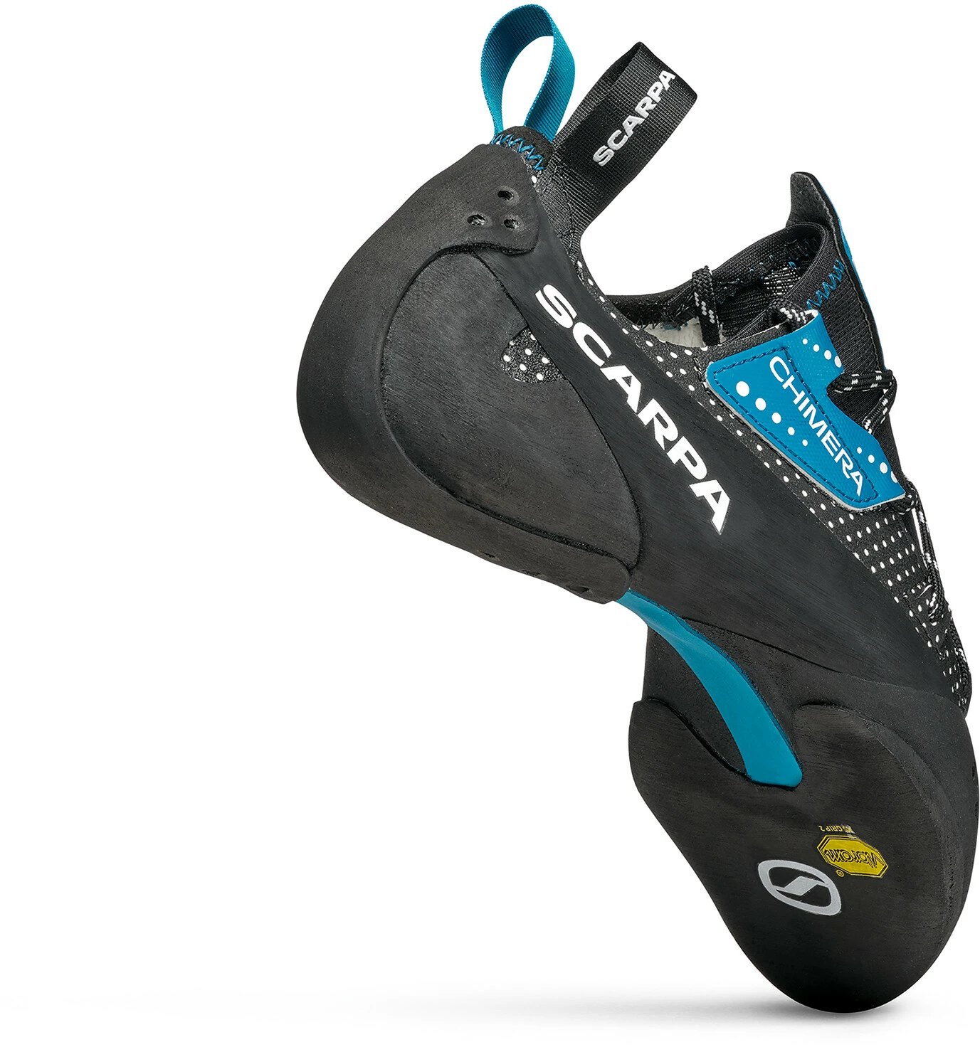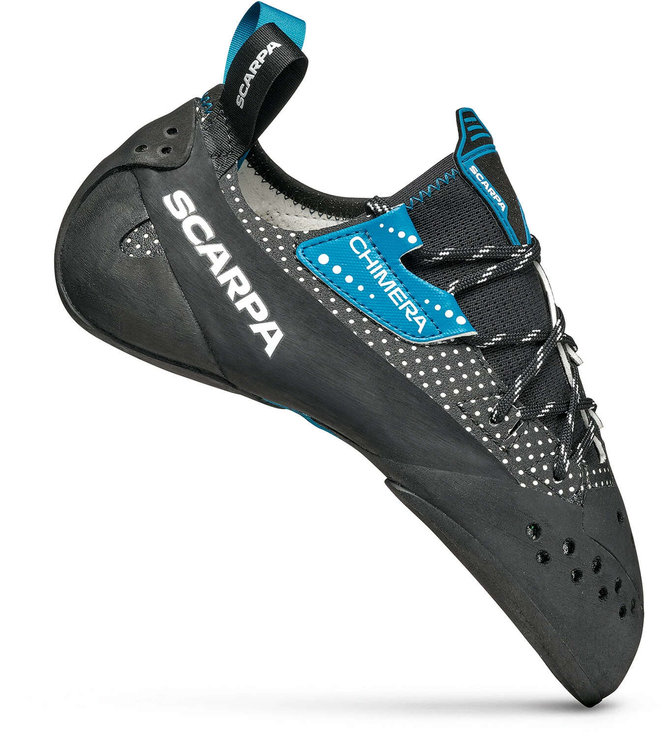 De Chimera is state of the art in de constructie en het materiaal van klimschoenen. De perfecte mix van kracht en gevoeligheid, dankzij het handgemaakte, meerdelige bovenwerk, het SRT-systeem in de voorvoet, de agressieve neerwaartse beweging en de asymmetrische vorm. Het PCB Tension System ondersteunt de voetspieren zowel bij het staan als bij het schuin afzetten van treden in overhangend terrein. Het TPS-systeem, dat bestaat uit een inzetstuk in het teengedeelte, ondersteunt de tenen in verticaal terrein bij de landing van kleine trappen. De combinatie van het SRT-systeem, dat het teengedeelte uitvoerig omsluit met een rubberen laag, en de goed geplaatste, asymmetrische vetersluiting zorgt voor een teenstuk dat uitstekende teenknopeigenschappen biedt. De Chimera is de perfecte keuze voor sportklimroutes en boulderen op alle wandhoogtes.