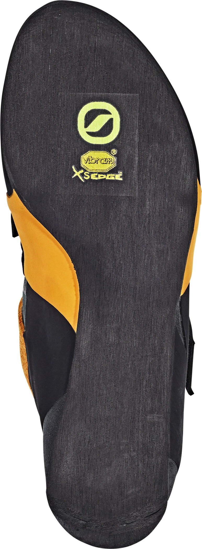 De Vibram XS Edge zool wordt gebruikt voor schoenen die ontworpen zijn voor veel grip, randstabiliteit en sterkte. Dit materiaal is ook ideaal voor multipitch-schoenen.