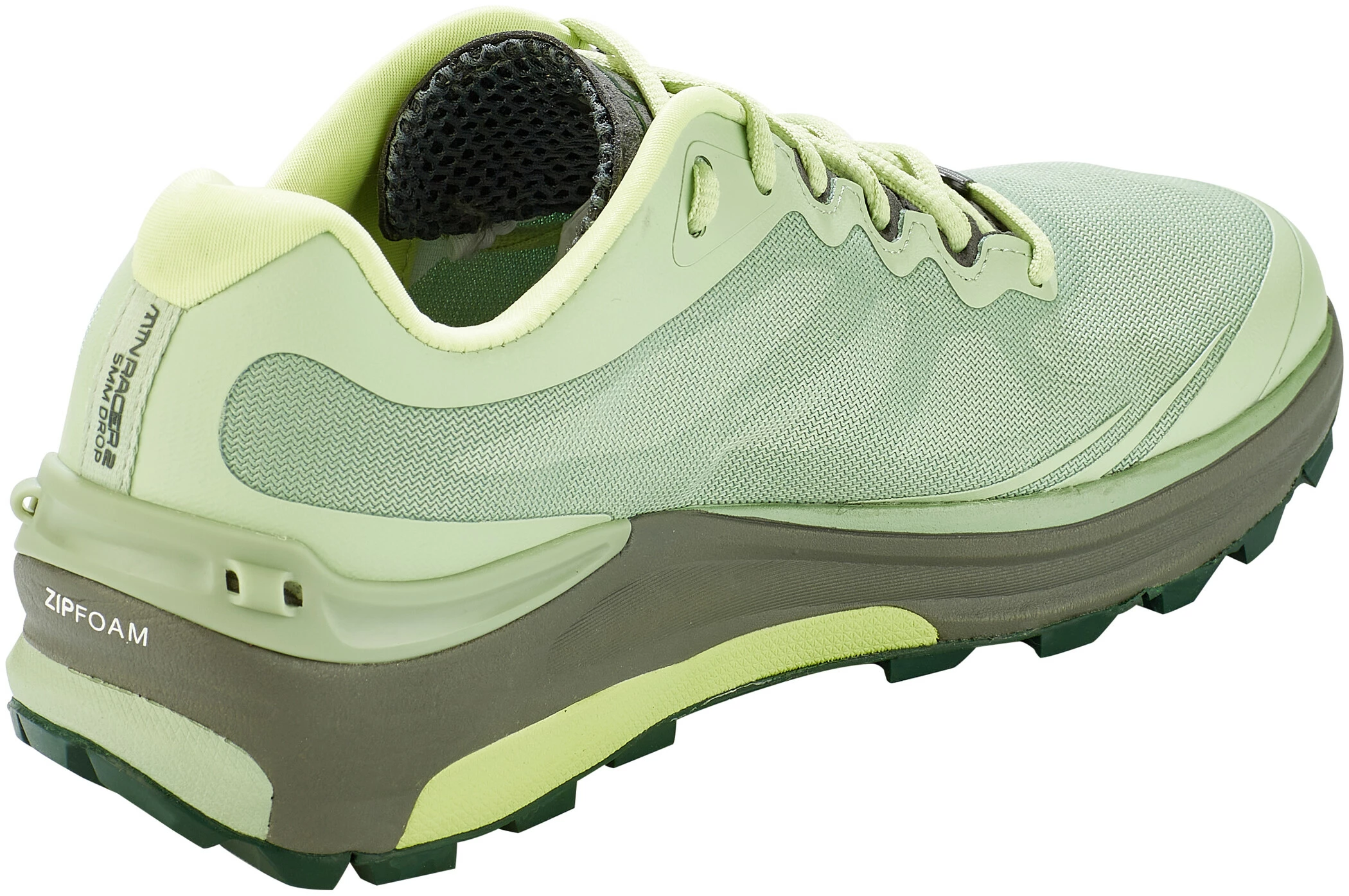 Licht regen- en spatwater wordt door het nieuwe, bijzonder resistente gaas via afvoerkanalen afgevoerd en droogt in een mum van tijd weer op. In deze nieuwe versie is de ventilatie verder geoptimaliseerd en zijn er gaiterbandjes geïntegreerd bij de hiel. Aan de comfortkant is de MTN Racer 2 voorzien van de nieuwe ZipFoam-middenzool met meerdere hardheidsniveaus en een extra dempende 5 mm Ortholite-binnenzool. Toch is hij ook en vooral op technisch veeleisende trails zeer stabiel en voldoende moeilijk te doen zonder een Rockplate.
