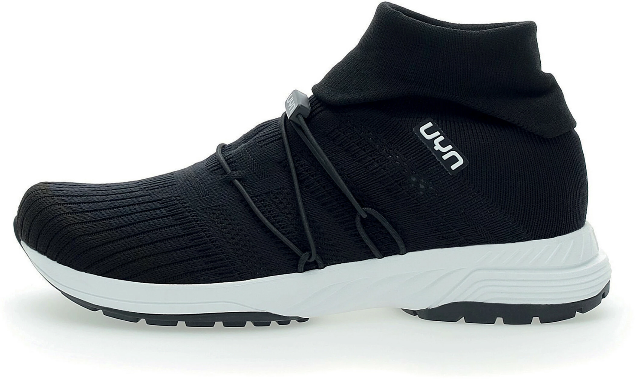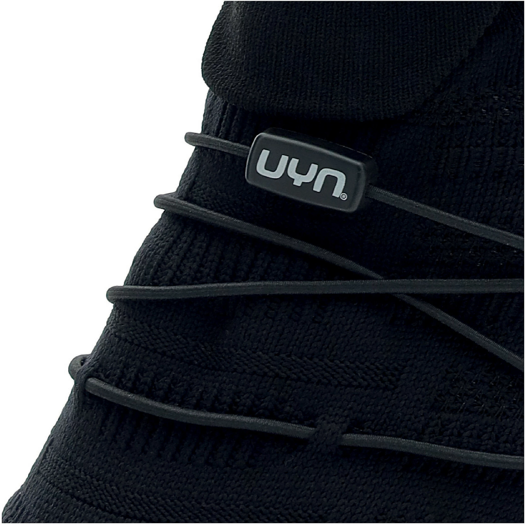 Het manchet is afgeleid van de structuur van de UYN sok, die altijd op zijn plaats blijft zonder beperkend aan te voelen. Hij kan hoog of opgevouwen worden gedragen, afhankelijk van persoonlijke stijl, outfit en gewenste mate van bescherming. De schoen past zich aan uw karakter aan, nooit andersom.