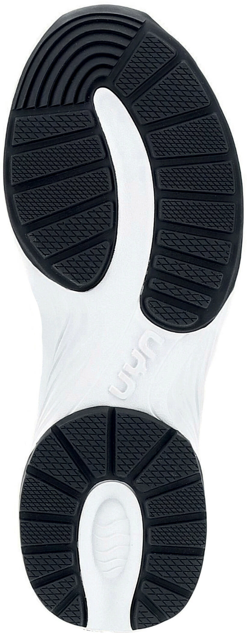 Bij het hardlopen werken de botskrachten op het lichaam in bij het eerste contact met de grond. De U-Control zool absorbeert deze krachten, ondersteund door het EVA materiaal en de structuur van de gehele tussenzool. Terwijl de zool flexibel blijft, dempen de U-vormige elementen van slijtvast rubber de impact op de grond. Volledige controle bij elke stap.