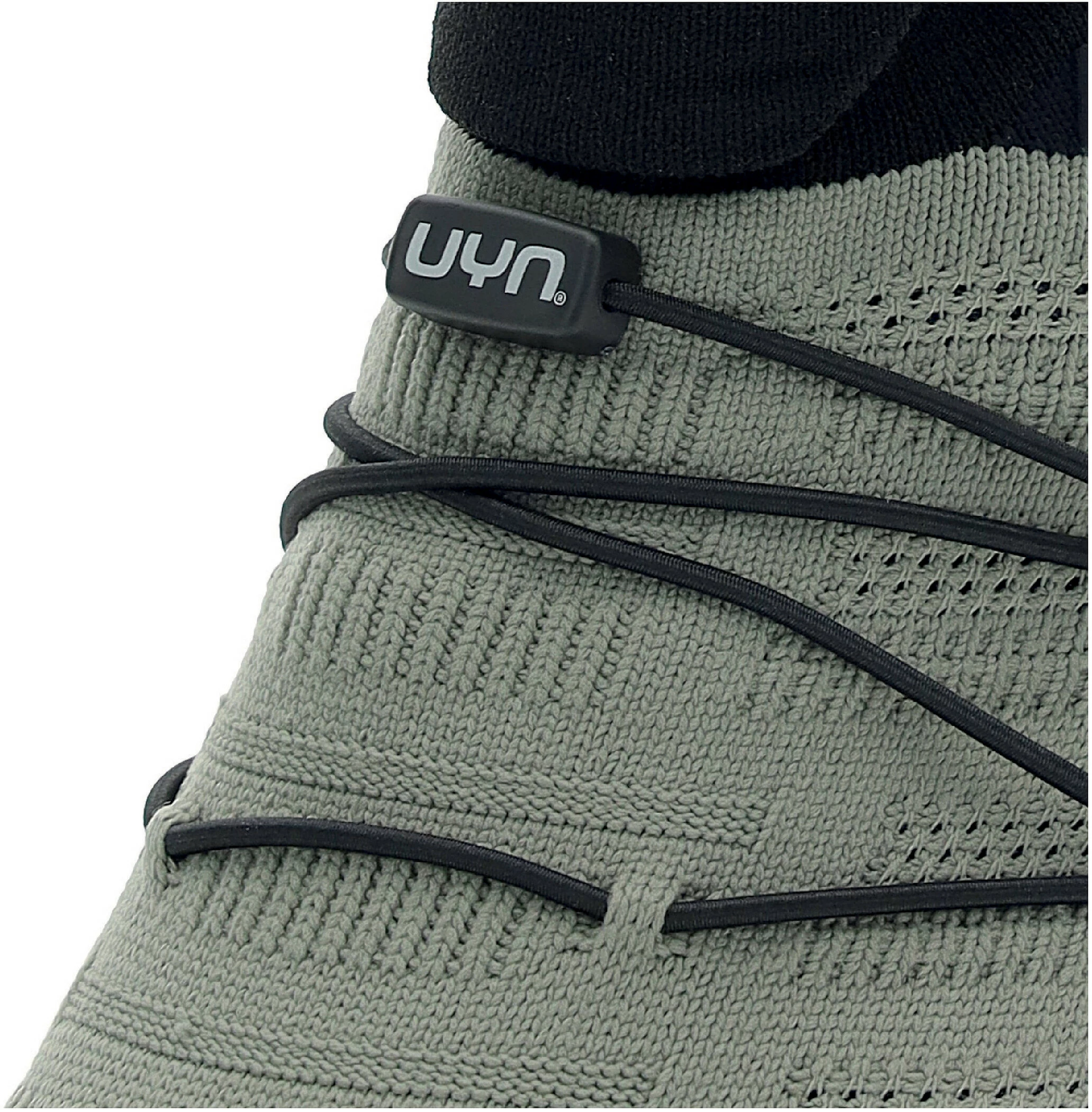Het manchet is afgeleid van de structuur van de UYN sok, die altijd op zijn plaats blijft zonder beperkend aan te voelen. Hij kan hoog of opgevouwen worden gedragen, afhankelijk van persoonlijke stijl, outfit en gewenste mate van bescherming. De schoen past zich aan uw karakter aan, nooit andersom.